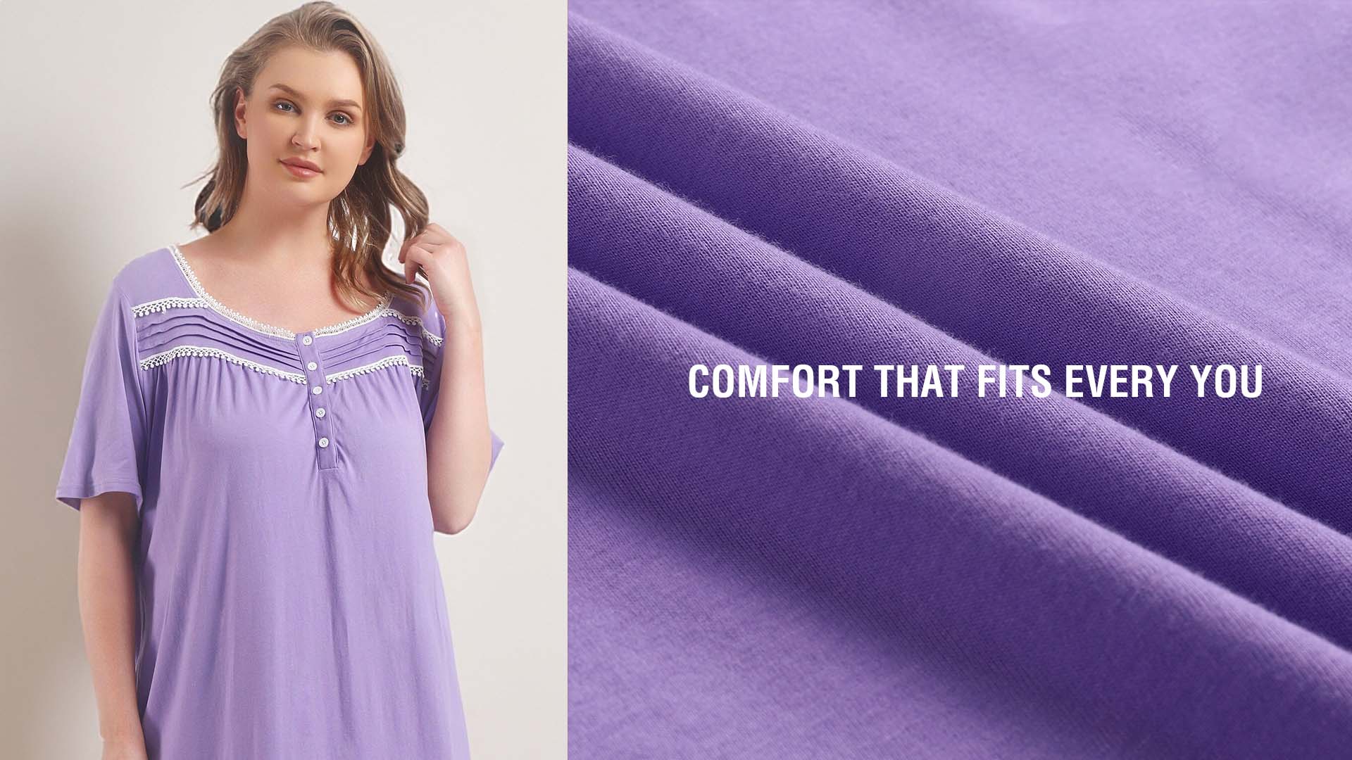 FEREMO Plus Size Nightgowns for Women Short Sleeve Sleepshirt Knee Length Sleepwear with Pockets