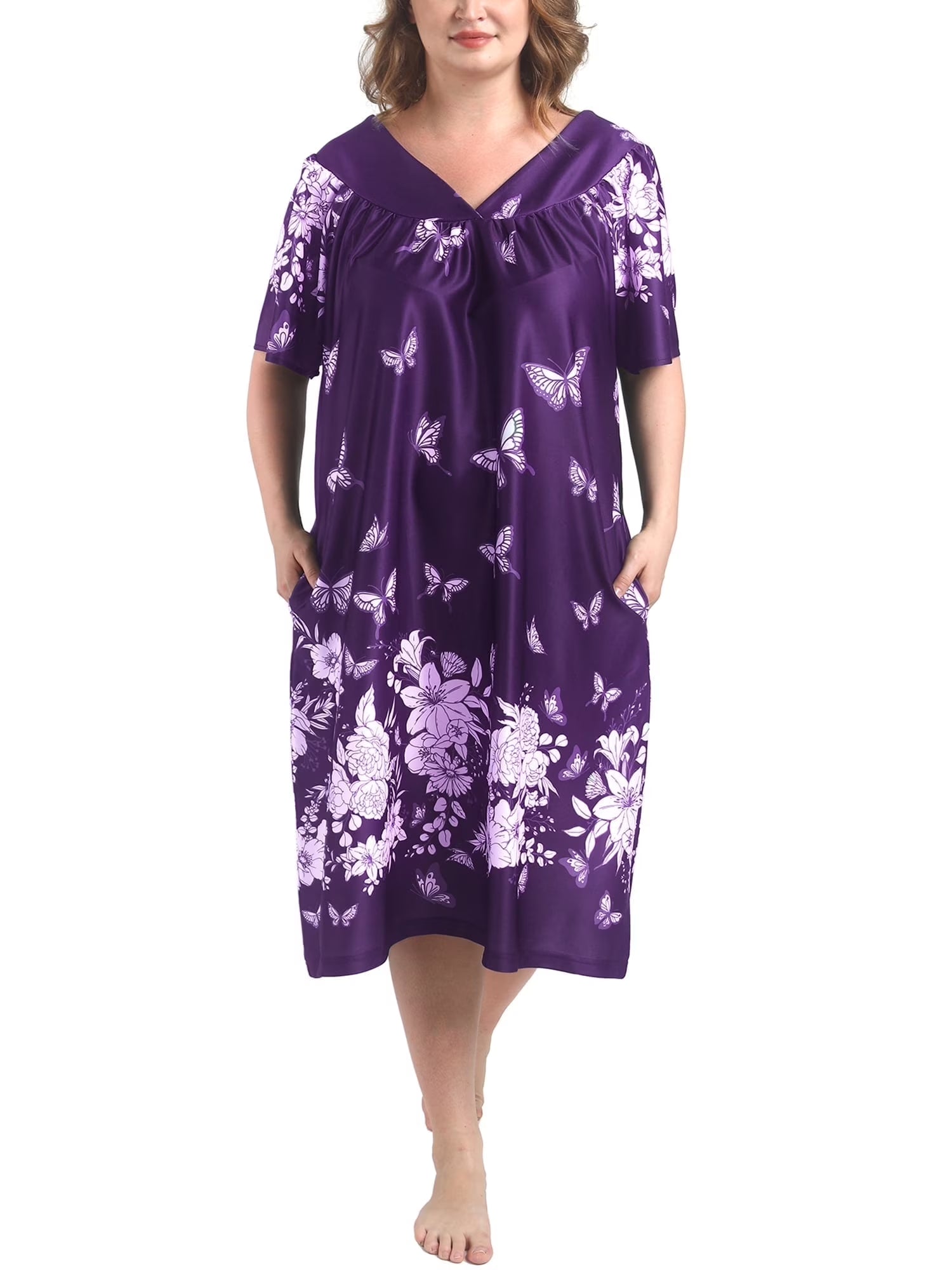 FEREMO Plus Size Nightgowns Womens House Dress with Pockets Short Sleeve Moomoo Nightgown Lounge Dresses for Women